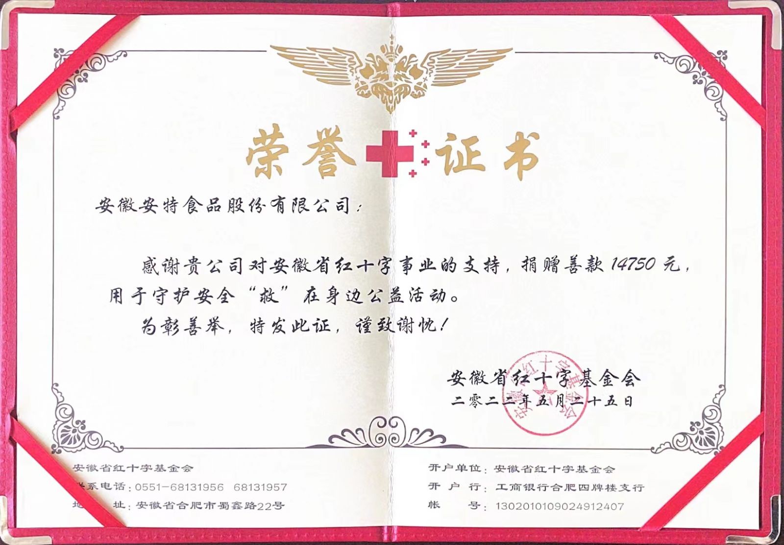 公司通過省紅十字基金會向宿州市雪楓小學(xué)金海校區(qū)捐贈安全防護(hù)書包50個