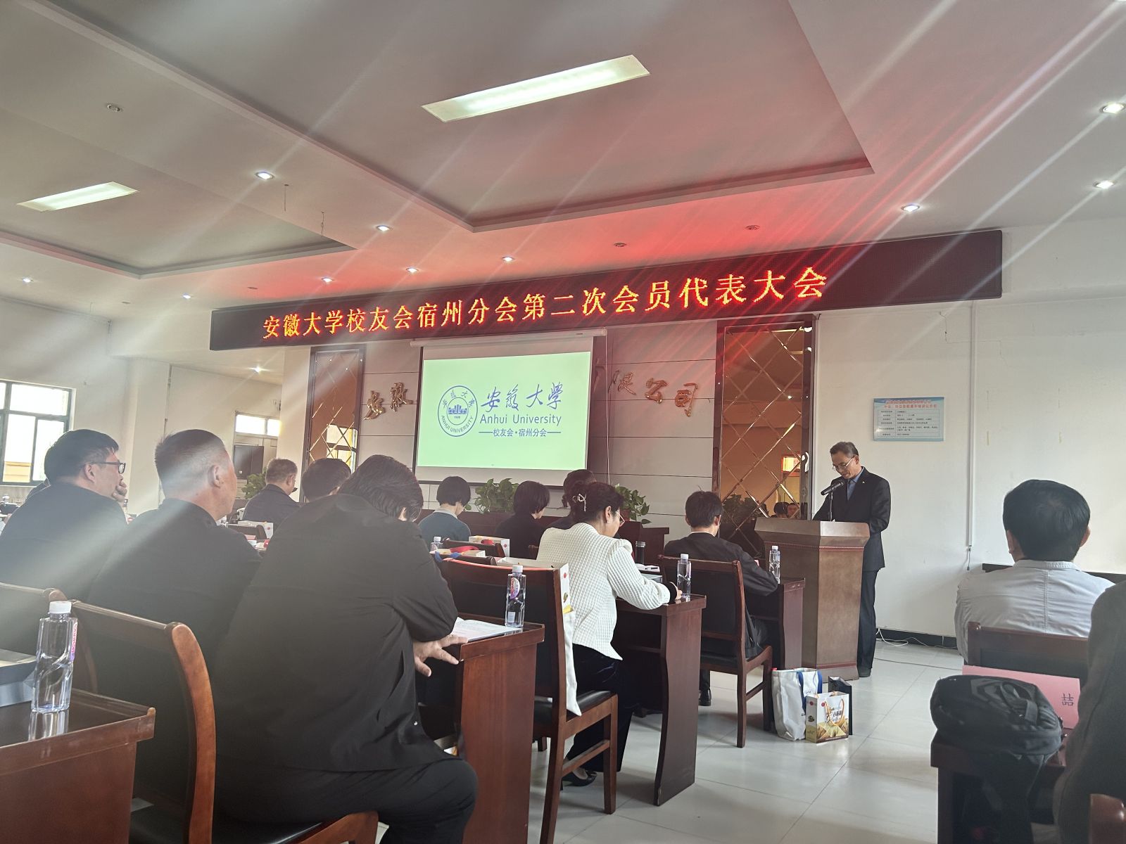 錢家盛代表母校向上一屆理事會(huì)的辛勤付出表示衷心感謝,向當(dāng)選的新一屆理事和大會(huì)的勝利召開表示熱烈祝賀,并介紹了母校“雙一流”建設(shè)以來取得的突出成就。錢家盛指出,校友是母校的靚麗名片,是安大精神的傳承者、踐行者,是安大辦學(xué)聲譽(yù)的傳播者、提升者。加強(qiáng)和改進(jìn)新時(shí)代校友工作,是實(shí)現(xiàn)建校百年奮斗目標(biāo)的必由之路。錢家盛表示,希望宿州校友分會(huì)堅(jiān)持服務(wù)校友、服務(wù)母校、服務(wù)社會(huì),將分會(huì)建設(shè)成為校友聯(lián)絡(luò)平臺(tái)、宣傳推廣基地、資源集聚中心、合作發(fā)展紐帶,為宿州校友事業(yè)進(jìn)步、母校“雙一流”建設(shè)事業(yè)高質(zhì)量發(fā)展和宿州經(jīng)濟(jì)社會(huì)發(fā)展做出更大貢獻(xiàn)。